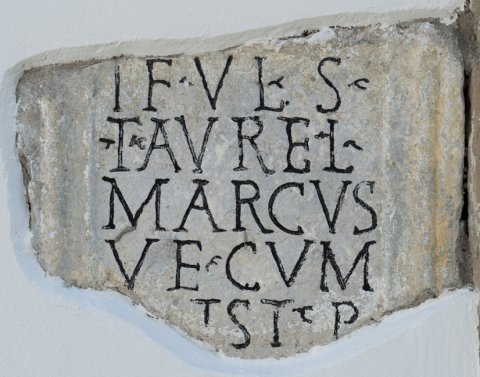 - I(ovi) Ful(guratori) s(acrum) / T(itus) Aurel(ius) / Marcus / ve(teranus) cum / [su]is l(ibens) p(osuit)