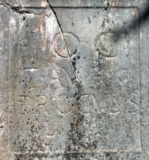 - Io(vi) C(ohortali?) / T(itus) Aur(elius) / Proculus / l(ibens) p(osuit)