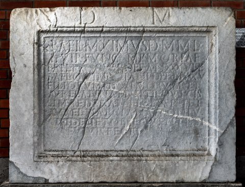 - D(is) M(anibus) // P(ublius) Aelius Maximus de(curio) m(unicipii) Mal(vesatium) / IIvir func(tus) memoriae / P(ubli) Ael(i) Proculi def(uncti) an(norum) XXXVI et / P(ubli) Ael(i) Quin[til]iani def(uncti) an(norum) XXV / filiorum piissimorum et / Aurel(iae) Annae neptis dulcis/simae def(unctae) ann(orum) III et sibi et / Aurel(iae) Marciana[e] coniu/gi fideli et obsequentissi/mae vivis fecit