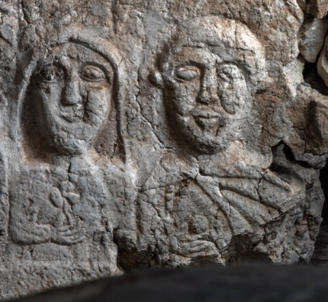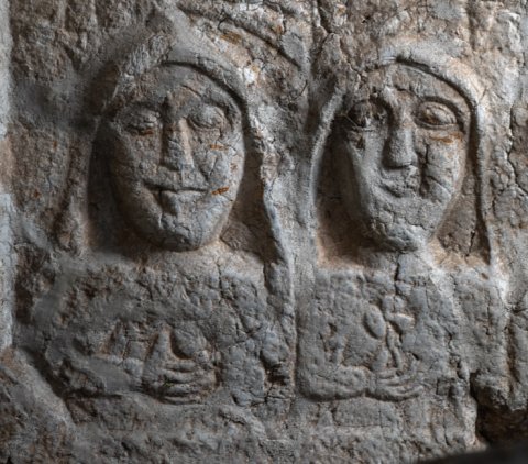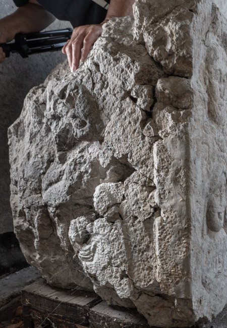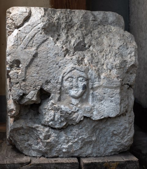 - aus Fragmenten zusammengesetzt, Seitenreliefs tlw. abgeschlagen