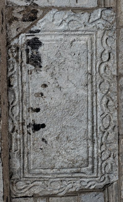 - Gerahmtes Schriftfeld, auf den Rahmenleisten Ranken, auf der linken unten Gefäß.