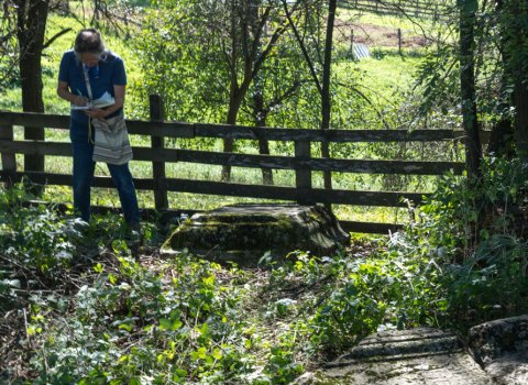 - in situ (in der Nähe zahlreiche weitere bearbeitete Blöcke)