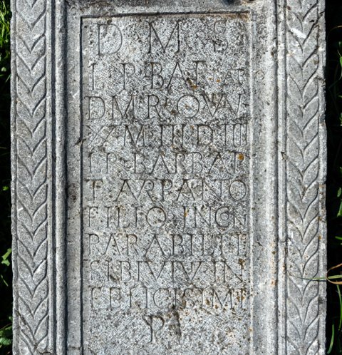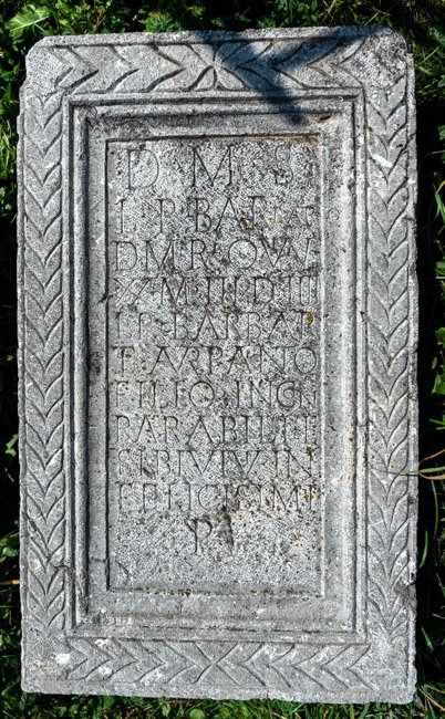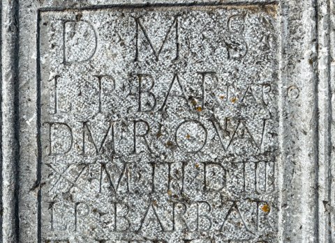 - D(is) M(anibus) s(acrum) / L(ucio) P(aconio?) Barbaro / d(ecurioni?) m(unicipii?) R(isinii?) q(ui) vi(xit) an(nos) / XX m(enses) III d(ies) IIII / L(ucius) P(aconius?) Barbar(us) / et Aur(elia) Panto / filio incon/parabili(!) et / sibi vivi in/felicis(s)imi / p(osuerunt)