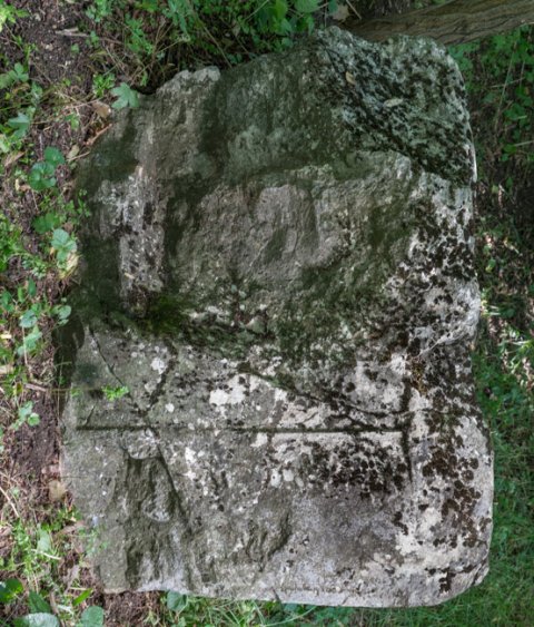 - rundum abgebr. (?), Relief abgeschlagen, versintert