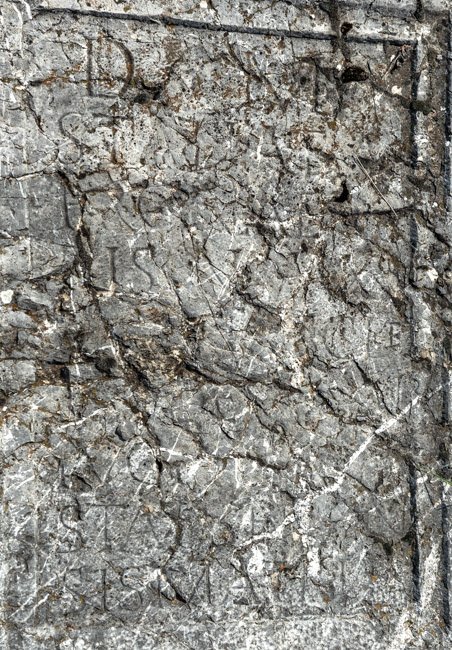- über dem gerahmten Schriftfeld Rest eines Relieffeldes