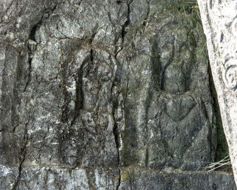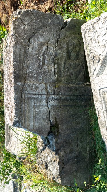 - Bogennische mit zwei Brustbildern: links Mädchen, rechts Frau, beide mit Schleier.