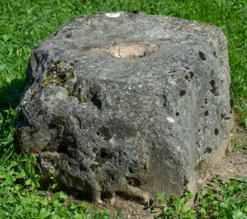 - völlig verwittert, Unterteil im Boden, in der Oberseite Dübelloch