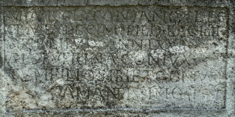 - D(is) M(anibus) // M(arco) Aur(elio) Glyconiano |(centurioni) leg(ionis) / Clau(diae) ex decimipilo leg(ionis) IIII F(laviae) / stip(endiorum) LII vix(it) ann(os) LXX / Ael(ia) Severina coniux / cum filio sibi et coniugi / amantissimo p(osuit)