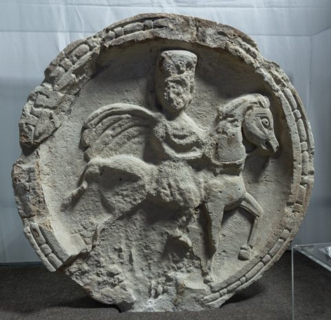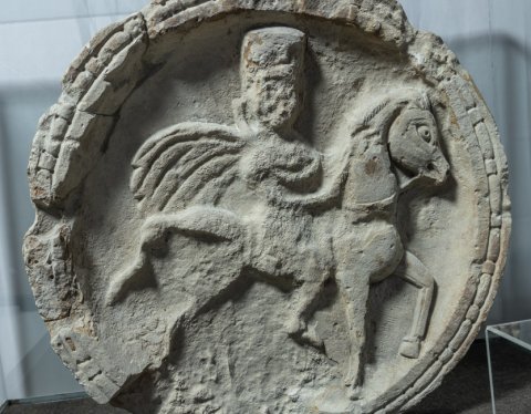 - Thrakischer Reiter (?) mit Polos, auf dem Rahmen Perlstab.