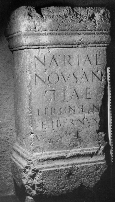 - Nariae / Nousan/tiae / T(itus) Frontin(ius) / Hibernus / v(otum) s(olvit) l(ibens) m(erito)