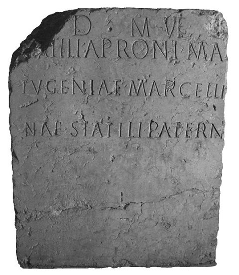 - D(is) M(anibus) v(ivi) f(ecerunt) / [St]atili Aproni Ma/tugeniae Marcelli/nae Statili Paterni