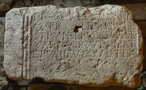 - ---] / [--- Val(erius)] / Proculus Savaria / optio leg(ionis) II Ad(iutricis) / stip(endiorum) VI ann(orum) XXV h(ic) s(itus) e(st) / Val(eria) Procula mat(er) / et Val(erius) Fuscus frat(er) / t(itulum) m(emoriae) p(osuerunt)