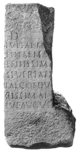 - D(is) [M(anibus)] / Iuliae Ma[rcel]/linae(?) ma[tri pi]/entissima[e et] / Severiae V[eru]/lae(?) coniu[g(i) ca]/rissimae / Iul(ius) August[---]