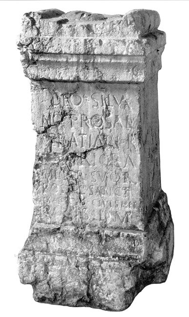 - Deo Silva/no pro salu/[t]e ratiarior(um) / superior(um) a/micor(um) suor(um) / pos(u)it L(ucius) Sanct(ius) / Marcus civis Hel(vetius) / v(otum) s(olvit) l(ibens) m(erito) / d[e] suo d(edit)