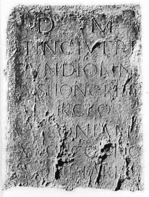 - D(is) M(anibus) / L(uci) Tinci Vere/cundi omni/bus honoribus / functo / Vassonia M(arci) f(ilia) / Urca coniugi / ponit kariss(imo)