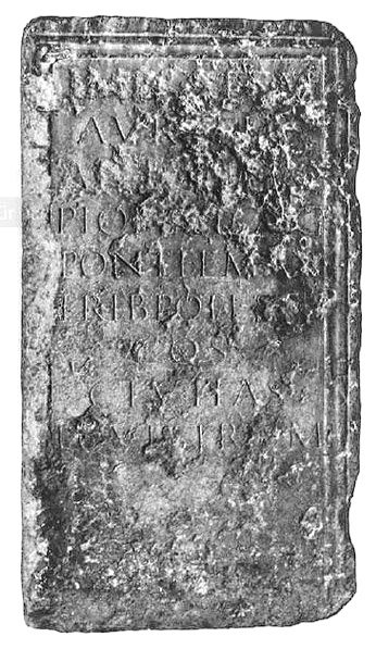 - [[Imp(eratori) Caes(ari) M(arco)]] / Aur[e]li[o] / [[Antoni[n]o]] / Pio Felic(i) A[u]g(usto) / pontif(ici) max(imo) / trib(unicia) potest(ate) / co(n)s(uli) / civitas / Equestrium