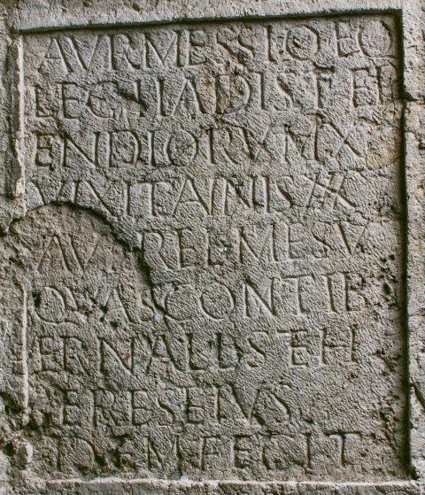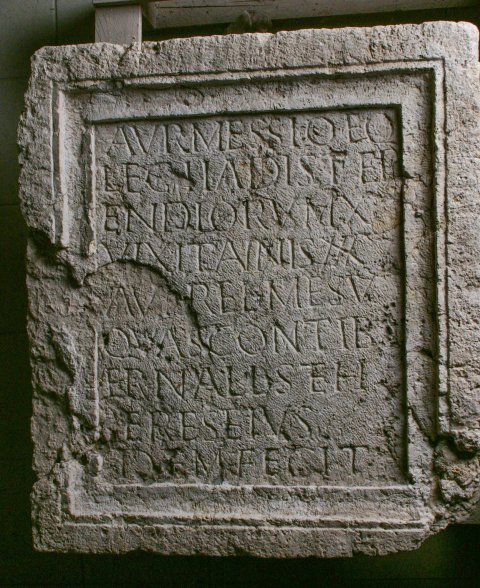 - Aur(elio) Messio eq(uiti) / leg(ionis) II adi(utricis) step/endiorum (!) X / vixit annis XXX / Aurel(ius) Mesuquas contib/ernalis(!) et h/eres eius/dem fecit
