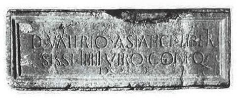 - D(ecimo) Valerio Asiatici libert(o) / Sissi IIIIIIviro col(oniae) Eq(uestris) / ex t(estamento)