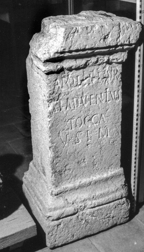 - Apollini et Mar/ti Adventius / Tocca / v(otum) s(olvit) l(ibens) m(erito)