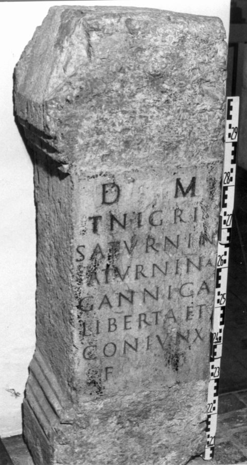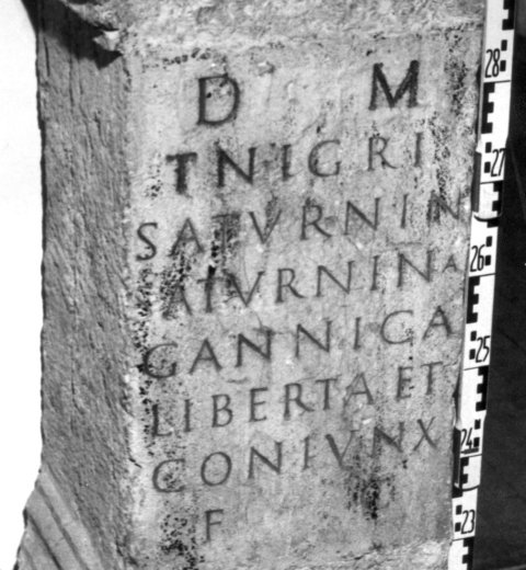 - D(is) M(anibus) / T(iti) Nigri / Saturnini / Saturninia / Gannica / liberta et / coniunx / f(aciendum) c(uravit)