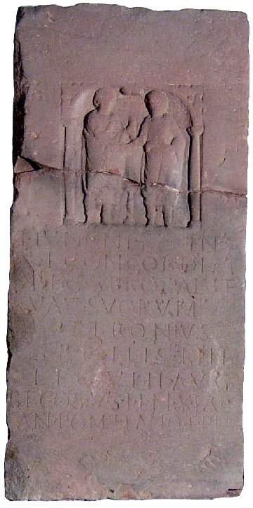 - [I(ovi) O(ptimo) M(aximo)] / et Iunoni Reginae / et G(enio) l(oci) Concordiae / b(ene)f(iciariorum) G(ermaniae) s(uperioris) pro salute / sua et suorum / Petronius / Senilis mil(es) / leg(ionis) VIII Aug(ustae) / b(ene)f(iciarius) co(n)s(ularis) v(otum) s(olvit) l(ibens) l(aetus) m(erito) X Kal(endas) / Ian(uarias) Pompeiano et P(a)eli(gniano) / [co(n)s(ulibus)]