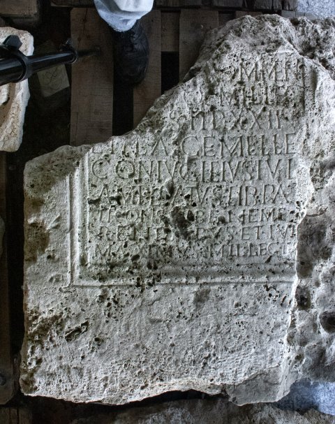 - [C(aio) Iu(li)o] C(ai) f(ilio) ?] Ommen/[tiae]o mil(iti) leg(ionis) / [I Ad(iutricis)] stip(endiorum) XXII / et Fla(viae) Gemell(a)e / coniugi eius Iul(ius) / Ampliatus lib(ertus) pa/tronis bene me/rentibus et Iul(ius) / Maximus mil(es) leg(ionis) II [Ad(iutricis)]