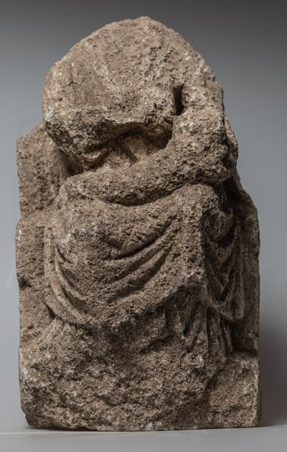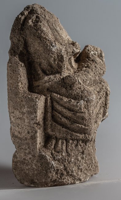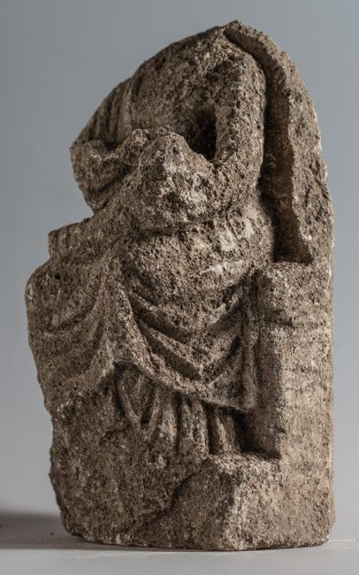- stark verwittert, Kopf u. Vorderteil der Basis abgebr.