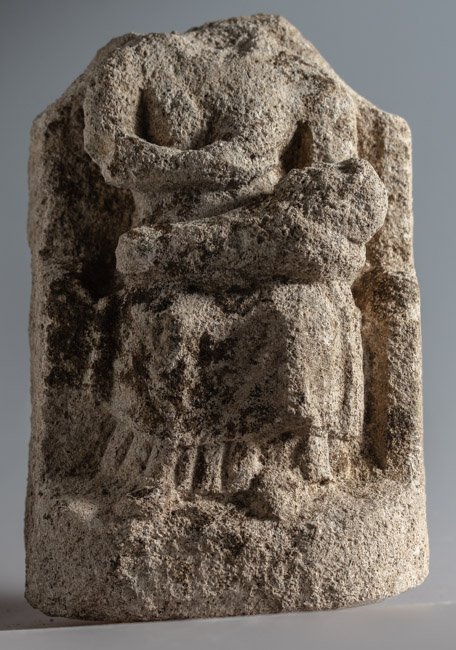 - stark verwittert u. bestoßen, Kopf u. Hals abgebr.