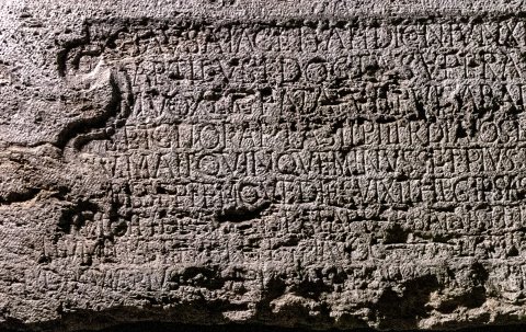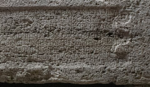 - Clausa iacet lapidi coniunx pia cara Sabina / artibus edocta superabat sola maritu/m vox ei grata fuit pulsabat pollice cordas / set (!) [c]ito rapta silet ter denos duxerat annos he/u male quinque minus set (!) plus tres me(n)ses habebat / bis septemque dies vixit h(a)ec ipsa superstes spectata in po/pulo hydraula grata regebat sis felix quicumque leges te / numina servent et pia voce cane Aelia Sabina vale T(itus) Ael(ius) Iustus / hydraularius salariarius leg(ionis) II ad(iutricis) coniugi faciendum curavit