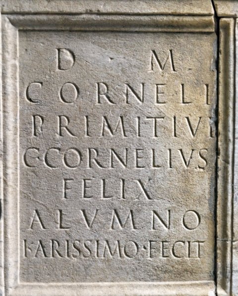 - D(is) M(anibus) / Corneli / Primitivi / C(aius) Cornelius / Felix / alumno / karissimo fecit