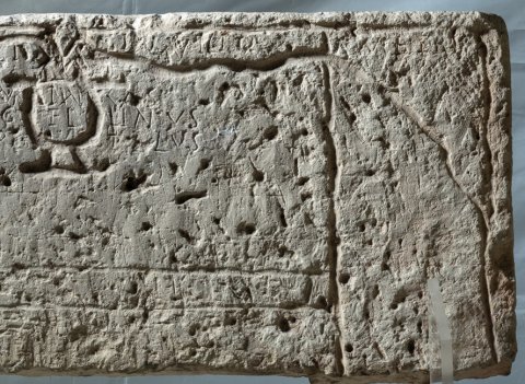 - Deo S//oli Invicto // Met(h)ri(!) // Aur(elius) Maximinus / Flavi(us) Marcellinus / Flavi(us) Marcellus // Rumanus(!) / Marcianus [---] IV / [--- p?]in[us?] II ficus X