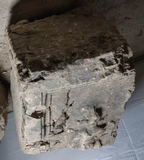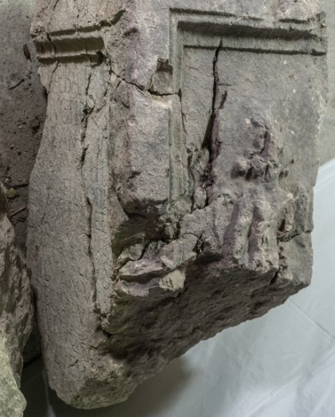 - in 2 Teile zerbrochen, linke Seite abgebr., Sprünge, bestoßen