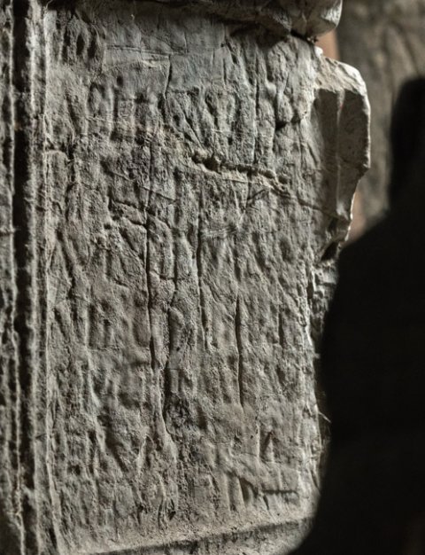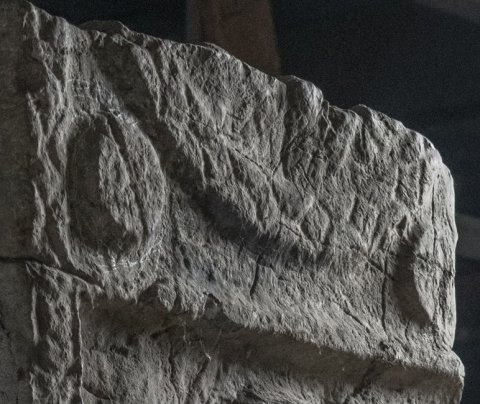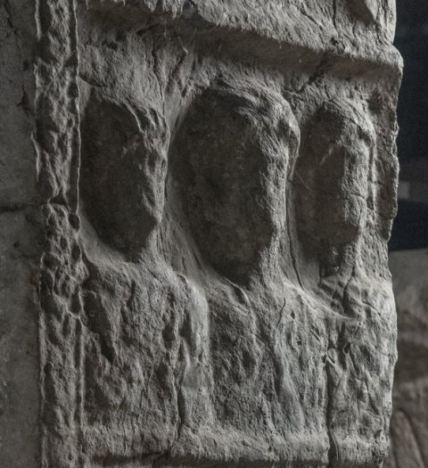 - stark verwittert, oben u. tlw. rechts abgebr.