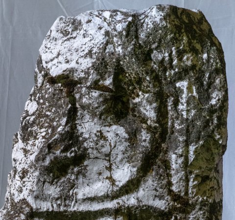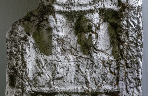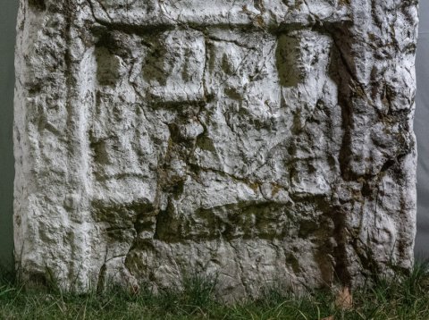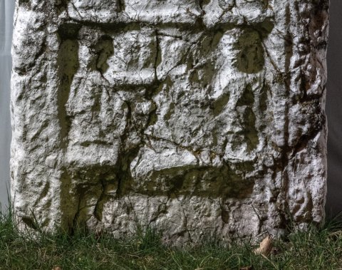 - Oberkante u. oben links abgebr., stark verwaschen, Inschrift nicht (mehr ?) vorhanden