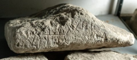 30425 Deckel einer Aschenkiste mit Inschrift