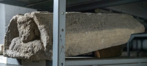 - Deckel mit fünfseitigem Querschnitte, auf der Stiernseite bekleidete Büste eines Kindes.