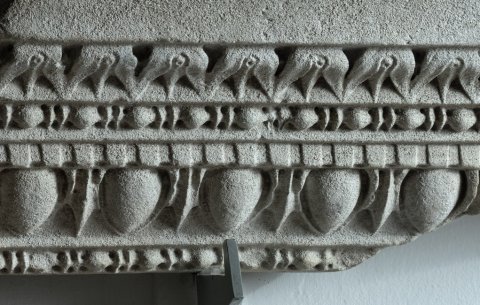 - Gesims mit Kyma, Astragalstab, Zahnschnitt, Eierstab, Astragalstab