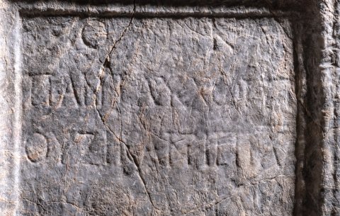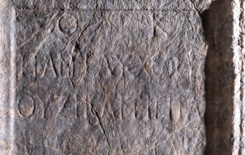 - griechisch: Θ(εοῖς) ∙ Κ(αταχθονίοις) / Πάνταυχω π/ου ζήσαντι ἔτη νʹ