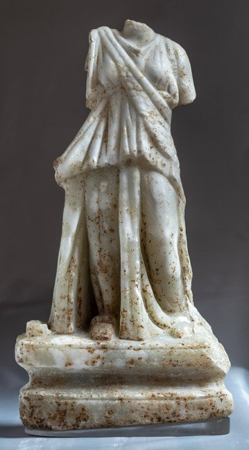 - Kopf, rechter Arm, linker Unterarm fehlen, versintert