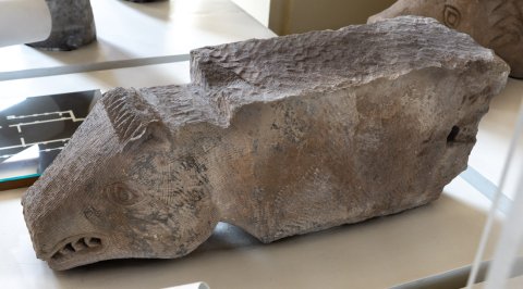- Konsolbalken, die vorn in Tierköpfe (Löwen (?) übergehen