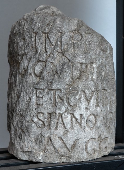 - Impp(eratoribus) Ca[ess(aribus)] / C(aio) Vibio G[allo] / et C(aio) Vibio Vol[u]/siano Pii(s) Fel(icibus) / Augg(ustis) [---