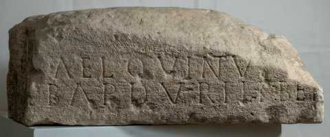 - [P(ublius)] Ael(ius) Quintus [scr]/iba p(ublicus) D(elminiensium) v(otum) re(ddidit) liben[s]