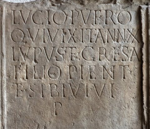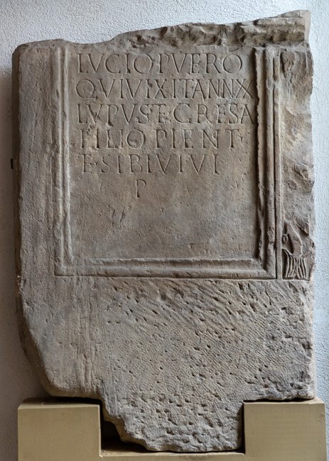 - ---] / Lucio puero / qui vixit ann(os) XX / Lupus et Cresa / filio pient(issimo) / et sibi vivi / p(osuerunt)
