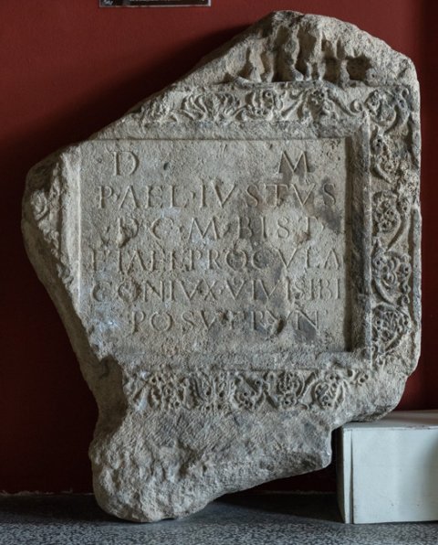 - D(is) M(anibus) / P(ublius) Ael(ius) Iustus / d(e)c(urio) m(unicipii) Bist(uensis) / et Ael(ia) Procula / coniux vivi sibi / posuerunt