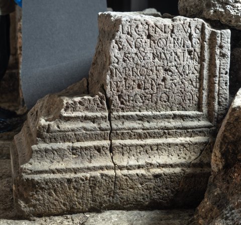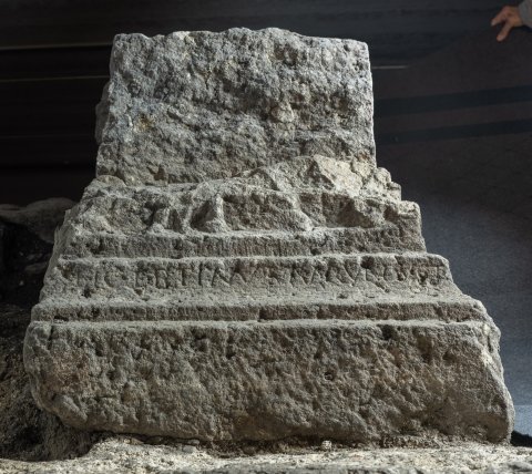 - 2011 bei den Grabungen im spätantiken Kleinkastell, dort sekundär verbaut