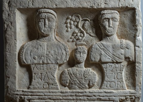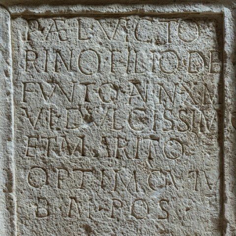 - D(is) M(anibus) // Ael(ia) / Mas/so // P(ublio) Ael(io) / Vic/tori // Proc(ulo) / def(uncto) ann(orum) / L // P(ublio) Ael(io) Victo/rino filio de/functo ann(orum) X m(ensium) / VI dulcissimo / et marito / optimo viva / b(ene) m(erentibus) pos(uit)