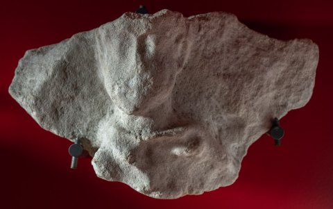 - Kopf und bekleidete Schulterpartie eines Mannes. Teil eines Grabreliefs ?