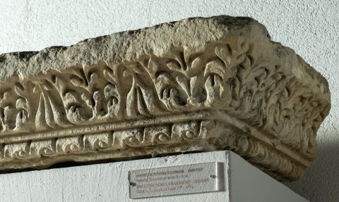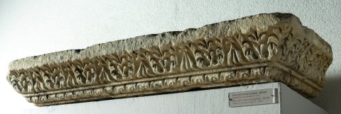 - Gesimsecke mit Flechtband und Palmettenfries