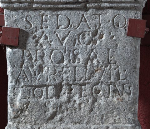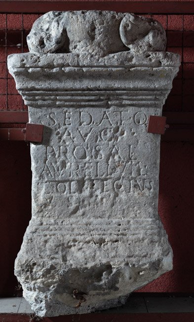 - Sedato / Aug(usto) / pro sal(ute) / Aureli vil(ici) / collegius(!) / v(otum) s(olvit) l(ibens) m(erito)