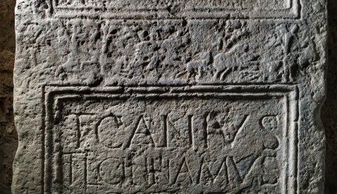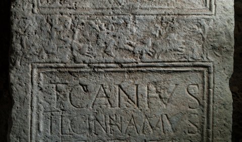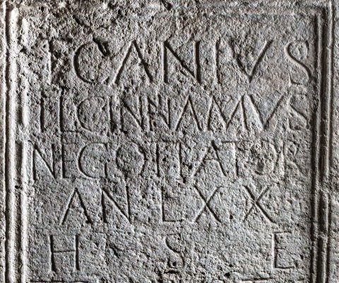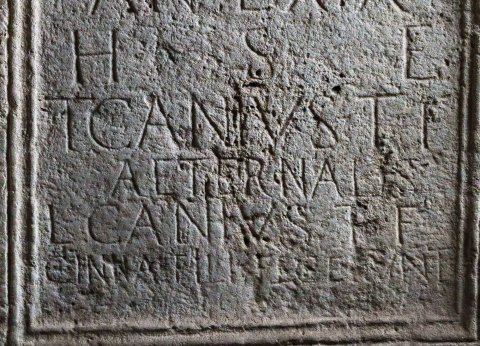 - T(itus) Canius / T(iti) l(ibertus) Cinnamus / negotiator / an(norum) LXX / h(ic) s(itus) e(st) / T(itus) Canius T(iti) f(ilius) / Aeternalis / L(ucius) Canius T(iti) f(ilius) / Cinna fili(i) fecerunt